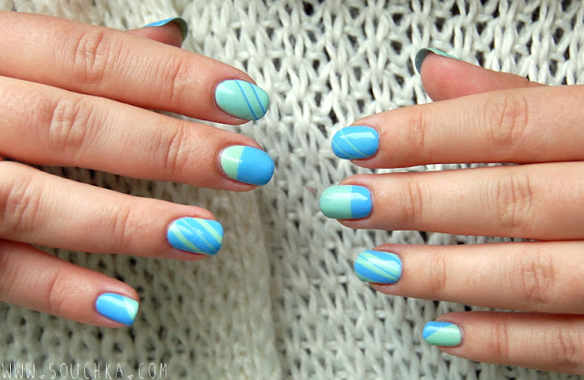 Et me voici donc partie un peu en free style, sans réelle idée de ce que je voulais en résultat final : et vas-y que j'alterne le scotch et le stripping tape ! Je crois que ce qui m'importait réellement était de porter ces deux couleurs ensemble car je trouve qu'elles se complètent à merveille.
