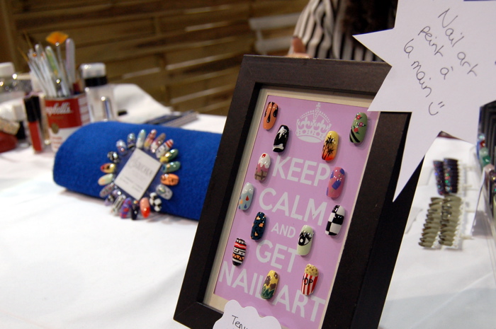 Bien installée à mon stand, avec mon pot à pinceaux en clin d'oeil aux oeuvres d'Andy Warhol, j'ai réalisé des manucures colorées comme je les aime !