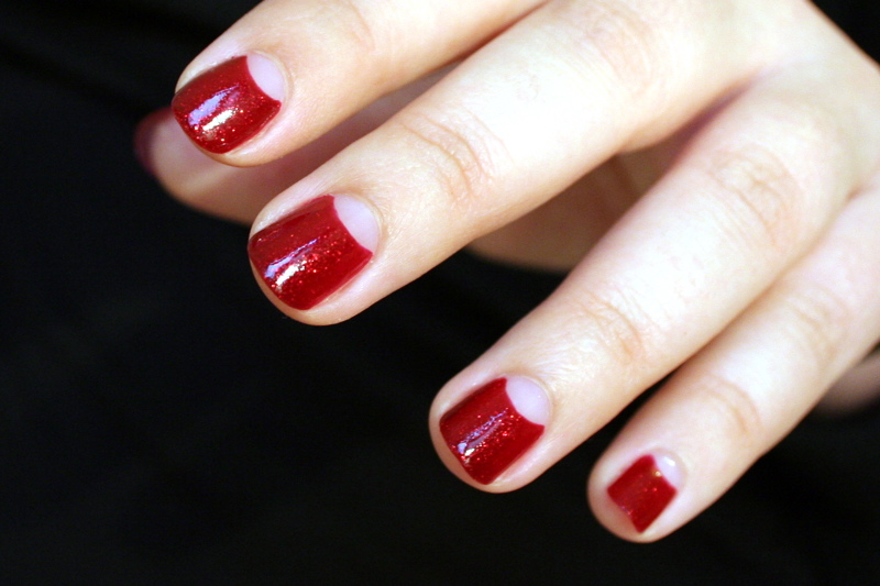 Une fine couche de paillettes de la chance par dessus, une couche de top coat, et hop, voici mes red nails ! Pailletés et à demi-nus, mais red nails quand même ^^