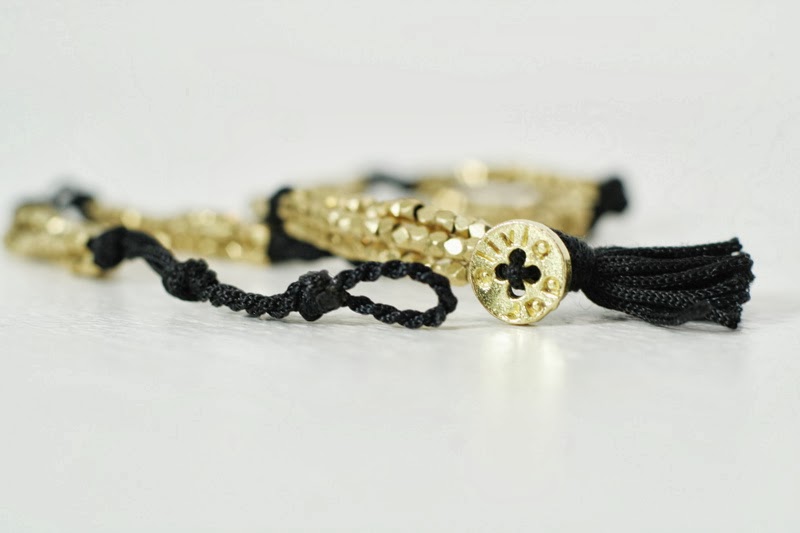 La box du mois de décembre que j'ai reçu contient un très joli bijou conçu par la créatrice Olivia Dar, exclusivement pour Emma & Chloé ! Ce joli wrap tressé en tissu noir et perles dorées à l'or fin 24 carats s'enroule en double tour autour de votre poignet, ou se porte en ras de cou délicat. Deux façons différentes de porter ce beau bijou, en fonction de votre humeur ou des occasions.