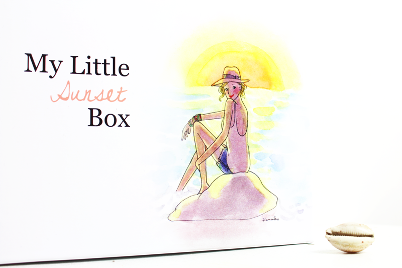 Celle de ce mois-ci s'appelle My Little Sunset box et est une véritable ôde au farniente et à la détente ! Pour les goodies, on y retrouve un joli trio de cartes postales à envoyer depuis la plage, le magazine My Little World (dans lequel vous retrouverez un magnifique carnet de voyage de la blogueuse Carnets de Traverse réalisé aux États-Unis !), un petit jeu de cartes illustrées et un joli bracelet tressé réalisé par Médecine Douce.