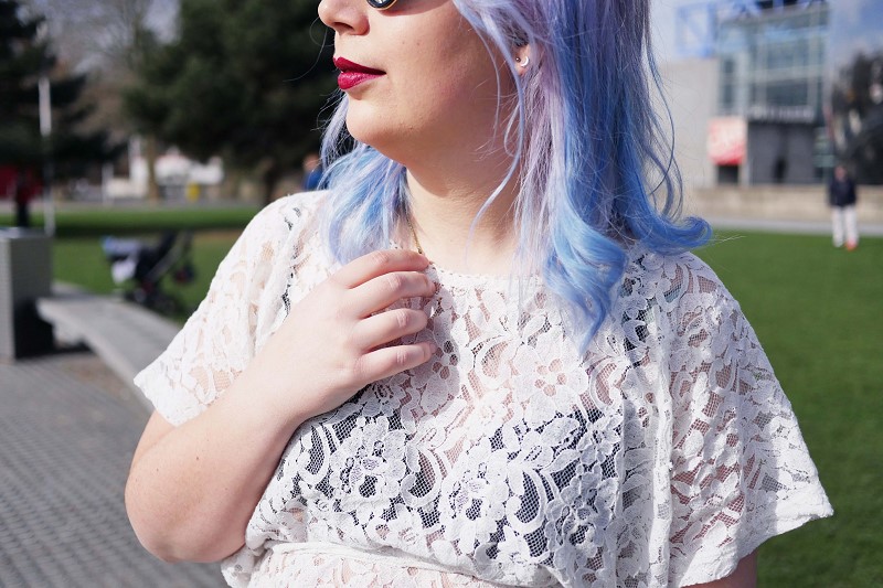 Alors oui, j'ai les cheveux rose, bleu ou violet, une chemise avec plein de petits coeurs, un sac à main en forme de cornet de pop corn, tout comme d'autres pourraient avoir un chapeau rouge, des bottines vernies, une jupe plissée ou même porter un saladier sur la tête si ça leur chante. Je suis heureuse de porter ce qui me plaît, parce que cela me fait plaisir à moi et non pas pour plaire, déplaire ou que sais-je encore à d'autres personnes. Il est grand temps que l'on cesse de se mettre des bâtons dans les roues tout seuls en appréhendant tant l'approbation d'autres personnes.