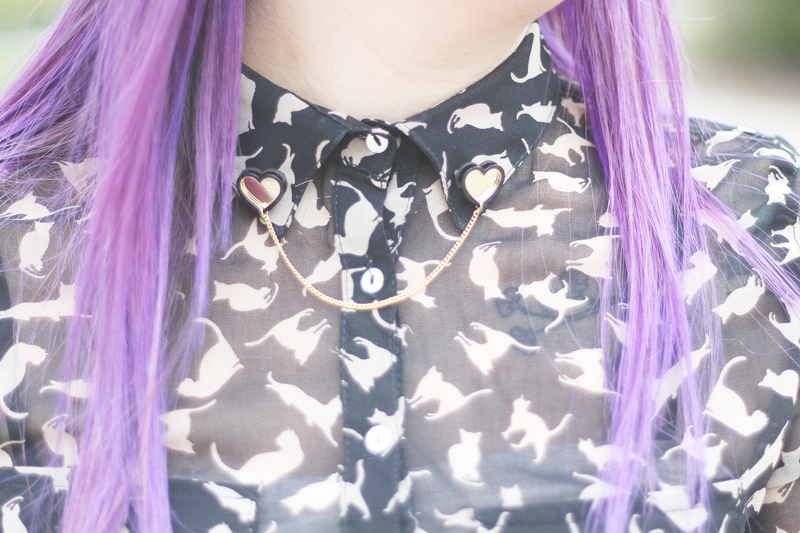 Nous en avons profité pour faire quelques photos de mon look, un mélange des genres comme j'aime tellement. Je portais un chapeau HM, une jolie blouse à petits chats Zara qui m'avait été offerte pour un de mes anniversaires (mais lequel ? ah, la vieillesse...) et ma jupe Monki que j'aime d'amour. J'ai complété le look avec avec des jolis petits coeurs dorés
