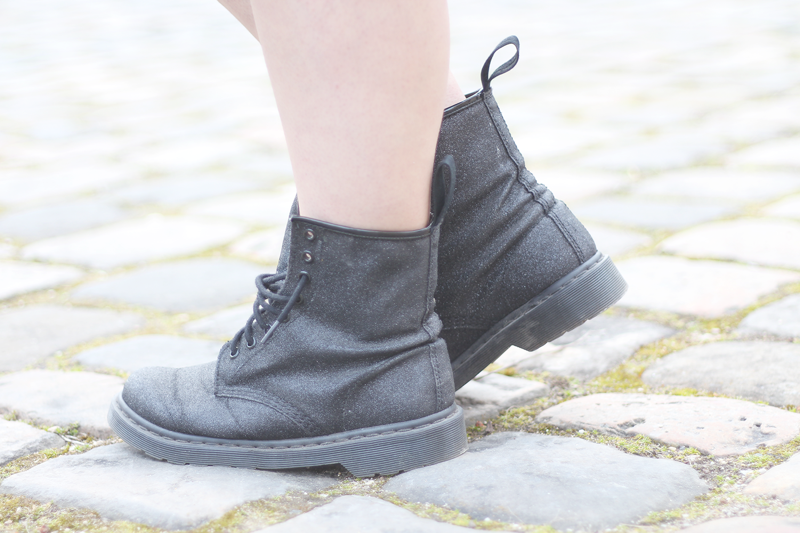Les Petites Découpes qui viennent orner mon col, ma paire de Doc Marteens à paillettes chopées en vente privée, ainsi que mon sac Premier Flirt de Lancel... Une jolie folie, un coup de coeur instantané qui me rappelle l'époque où je travaillais pour cette belle maison ! Oui, vous pouvez m'imaginer avec un chignon et un tailleur, ainsi qu'un petit gant noir pour manipuler les sacs ahahah !