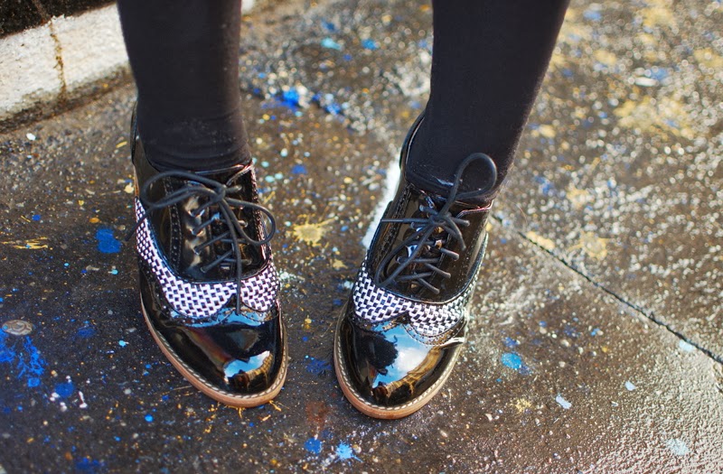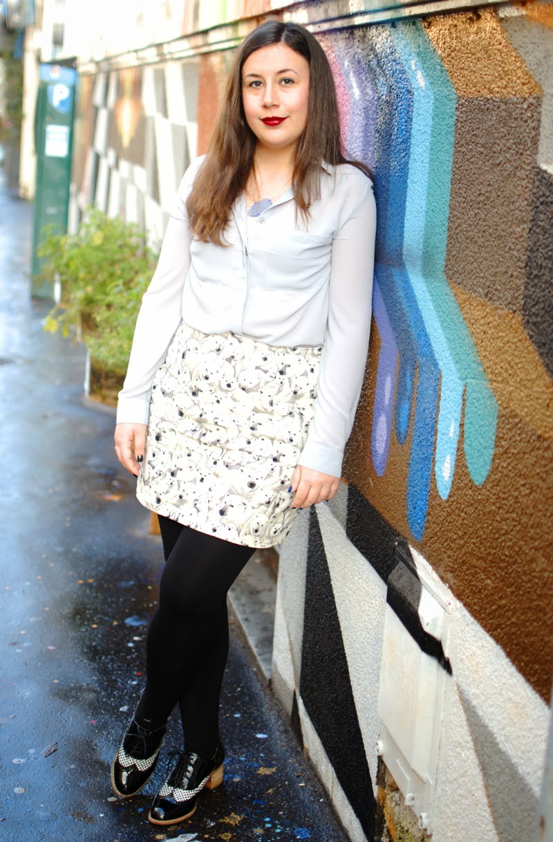 Jupe ours blanc : Forest Krump, blouse New Look, collier Kiss Me Zombie, derbies Jeffrey Campbell