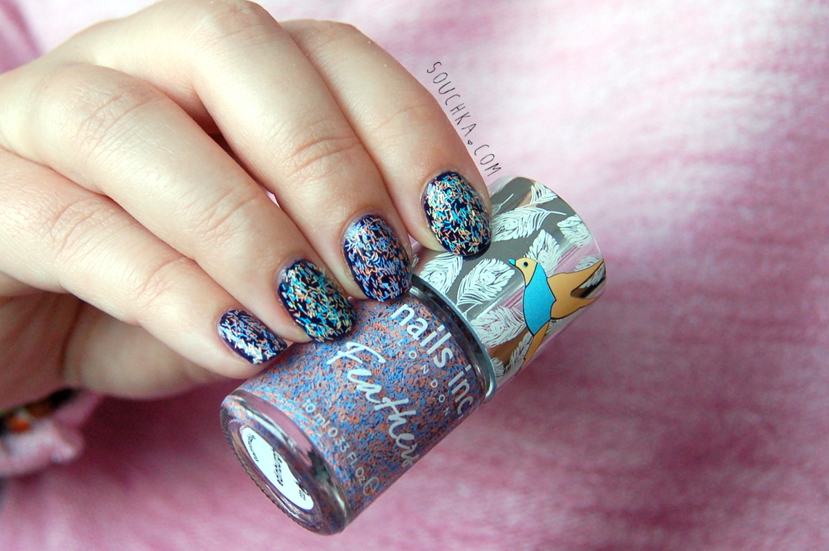 J'ai commencé par poser George Street, le nude rosé de Nails Inc : par vraiment ma came niveau couleur, je la trouve un peu trop terne, surtout à cette saison où j'ai beaucoup de mal à lutter contre ma peau sèche et son teint tout pourri ! J'ai essayé d'y ajouter quelques traits de paillettes sur mon vernis tout frais posé avec l'un des stylos-glitter d'Andrea Fulerton, en suivant les indications sur l'arrière du paquet qui montraient plusieurs résultats possibles.