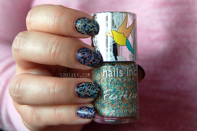Pas découragée et bien décidée à avoir un résultat plus propre avec mes paillettes, j'ai posé le superbe rouge Tate de Nails Inc et l'ai recouvert d'une couche de top coat accélérateur de séchage.