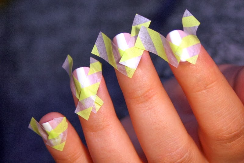 Hop, deux petits morceaux de masking tape au bout de chaque ongle, et on a un triangle pré-défini.